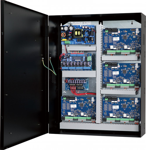 Altronix T2HW7LXK3 is a 8-door access and power integration kit which includes Altronix power and sub-assemblies along with factory installed wire management and wire assemblies that are pre-configured with terminal blocks for Honeywell ProWatch/WinPak hardware. This unit provides ample power and dual voltage outputs to support Honeywell platform controllers and locking devices. The T2HW7LXK3 accommodates four (4) Dual Reader Modules. Trove Plus simplifies field installations and provides reliable, robust critical power and control for the most demanding applications.