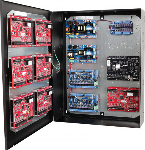 Altronix T2MK75F16AQ kit consists of Trove2 enclosure, TM2 Mercury/Altronix backplane and TMV2 door backplane with one (1) 24VDC @ 10A and one (1) 12VDC @ 10A power supply/chargers, two (2) eight (8) fuse protected output dual input/output network access control modules and one (1) sixteen (16) fuse protected dual input/output power distribution module. This kit also accommodates various combinations of Mercury/Lenel* boards for up to sixteen (16) doors in a single enclosure. Trove simplifies board layout and wire management, reduces installation time and labor costs. *Also compatible with these authentic Mercury partners: AccessNsite, Avigilon, BadgePass, BluBox, Feenics, Genetec, Identicard, IMRON, Johnson Controls, Kastle, Keri Systems, Lenel/S2, LockState, Maxxess, Midpoint Security, NLSS, Open Options, Panasonic Video Insight, Quintron, RS2, Schneider Electric, Vanderbilt