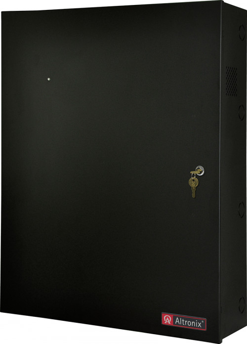 Altronix T3GXK77F16SD kit consists of Trove3 enclosure, TCV3 CDVI/Altronix backplane with two (2) 24VDC @ 10A power supply/charger, two (2) eight (8) PTC protected dual input/output access control modules, two (2) 12VDC voltage regulators and two (2) eight (8) PTC protected dual input/output power distribution modules. This kit also accommodates one (1) 635 CPU, one (1) 635 DSI and eight (8) 635 DRM for up to sixteen (16) doors in a single enclosure. Trove simplifies board layout and wire management, reduces installation time and labor costs.