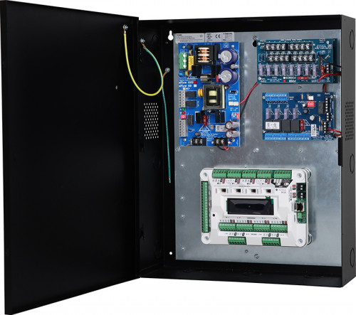 Altronix T1CRK3F4D kit consists of Trove1 enclosure, TDR1 backplane with one (1) 24VDC @ 6A power supply/charger, one (1) fuse protected access power controller, one (1) voltage regulator and one (1) dual input fuse protected power distribution module. This kit also accommodates one (1) Rhombus DC20M for up to four (4) doors in a single enclosure. Trove simplifies board layout and wire management, reduces installation time and labor costs.