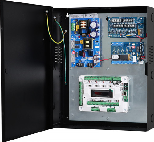 Altronix T1CRK3F4DD kit consists of Trove1 enclosure, TDR1 backplane with one (1) 24VDC @ 6A power supply/charger, one (1) PTC protected access power controller, one (1) voltage regulator and one (1) dual input PTC protected power distribution module. This kit also accommodates one (1) Rhombus DC20M for up to four (4) doors in a single enclosure. Trove simplifies board layout and wire management, reduces installation time and labor costs.