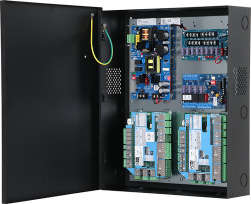 Altronix T1CSK3F4 kit consists of Trove1 enclosure, TC1 backplane with one (1) 24VDC @ 6A power supply/charger, one (1) fused access power controller, one (1) voltage regulator and one (1) dual input fused power distribution module. This kit also accommodates two (2) iNet for up to four (4) doors in a single enclosure. Trove simplifies board layout and wire management, reduces installation time and labor costs.