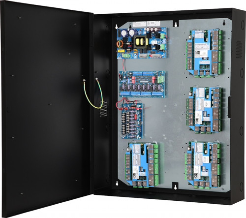 Altronix T2CSK7F8SD kit consists of Trove2 enclosure, TCV2 CDVI/Altronix backplane with one (1) 24VDC @ 10A power supply/charger, one (1) eight (8) PTC protected dual input/output access control module, one (1) 12VDC voltage regulator and one (1) eight (8) PTC protected dual input/output power distribution module. This kit also accommodates up to four (4) iNet for up to eight (8) doors in a single enclosure. Trove simplifies board layout and wire management, reduces installation time and labor costs.