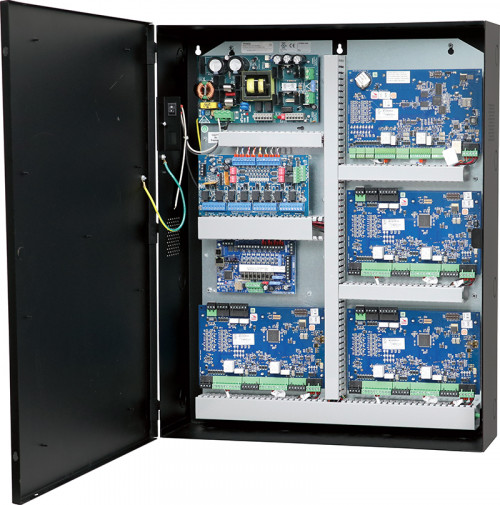 Altronix T2HW7CK1DQP is a 8-door network managed access and power integration kit which includes Altronix power and sub-assemblies along with factory installed wire management and wire assemblies that is pre-configured with terminal blocks for Honeywell ProWatch/WinPak hardware. This unit provides ample power and dual voltage outputs to support Honeywell platform controllers and locking devices. The T2HW7CK1DQP accommodates one (1) Intelligent Controller and three (3) Dual Reader Modules. Trove Plus simplifies field installations and provides reliable, robust critical power and control for the most demanding applications.
