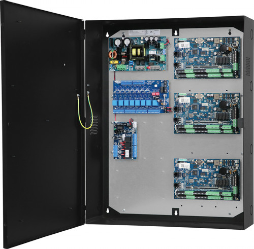 Altronix T2KHK7F12D kit consists of Trove2 enclosure, TKH2 Kantech/Altronix backplane with one (1) 24VDC @ 10A power supply/charger, one (1) eight (8) output PTC access power controller, and one (1) four (4) output PTC access power controller. This kit also accommodate various combinations of Kantech boards for up to twelve (12) doors in a single enclosure. Trove simplifies board layout and wire management, reduces installation time and labor costs.