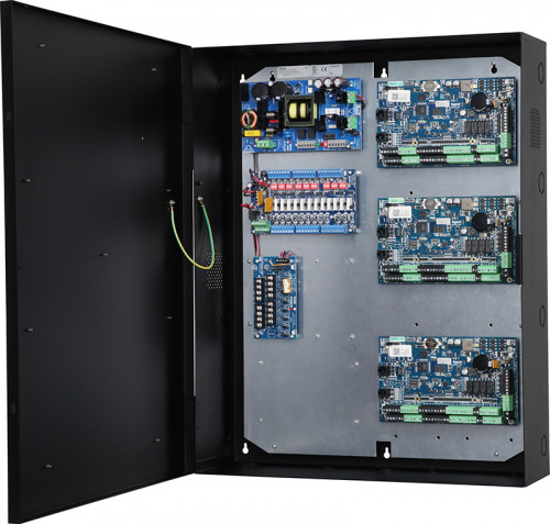 Altronix T2KHK7F12SD kit consists of Trove2 enclosure, TKH2 Kantech/Altronix backplane with one (1) 24VDC @ 10A power supply/charger, one (1) 12VDC voltage regulator, one (1) twelve (12) output PTC dual input/output access power controller, and one (1) eight (8) output PTC dual input/output power distribution module. This kit also accommodate various combinations of Kantech boards for up to twelve (12) doors in a single enclosure. Trove simplifies board layout and wire management, reduces installation time and labor costs.
