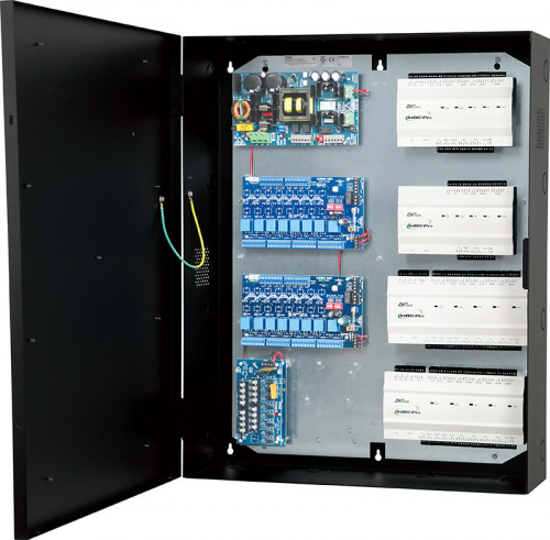 Altronix T2ZK7F16D kit consists of Trove2 enclosure, TDR2 ZKTeco/Altronix backplane with one (1) 24VDC @ 10A power supply/charger, two (2) PTC access power controllers, one (1) voltage regulator and one (1) dual input PTC power distribution module. This kit also accommodates up to four (4) ZKTeco modules for up to sixteen (16) doors in a single enclosure. Trove simplifies board layout and wire management, reduces installation time and labor costs.