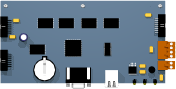 Voltage Regulator. Converts 24VDC input into 5VDC or 12VDC output.